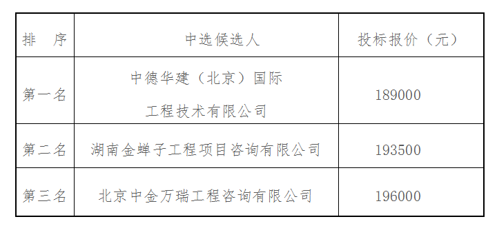弘福雅苑項目可研服務單位采購于2022年3月25日上午9時00分(北京時間)進行了比選開標、評標活動,本項目采用“低價中標法”,經(jīng)評審小組綜合評審,現(xiàn)將中選候選人排名結(jié)果公示如下: